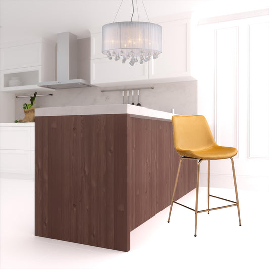 39" Yellow Velvet And Gold Low Back Counter Hei... 39" Yellow Velvet And Gold Low Back Counter Height Bar Chair With Footrest By Homeroots