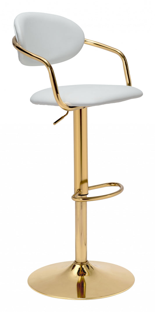 24" White And Gold Steel Swivel Low Back Counte... 24" White And Gold Steel Swivel Low Back Counter Height Bar Chair With Footrest By Homeroots