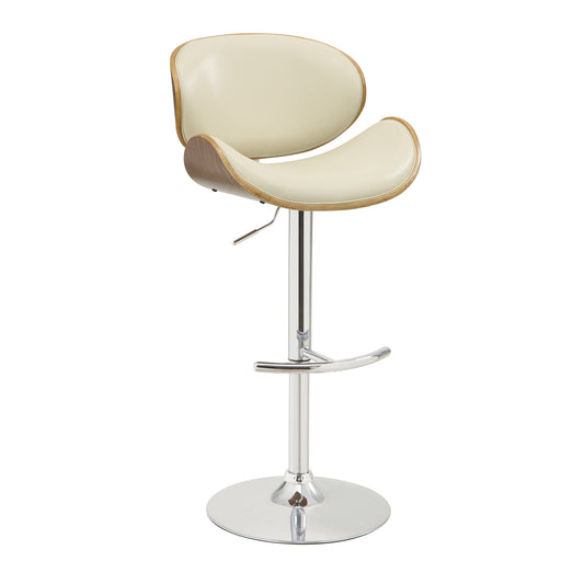 Adjustable Bar Height Stool, Cream & Walnut By ... Adjustable Bar Height Stool, Cream & Walnut By Benzara