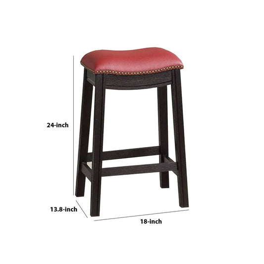 24 Inch Padded Counter Stool With Nailhead Trim... 24 Inch Padded Counter Stool With Nailhead Trim, Set Of 2, Brown And Red By Benzara