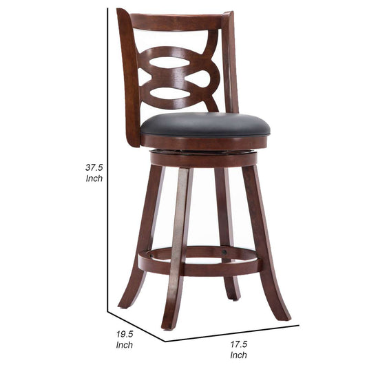 24 Inches Swivel Wooden Counter Stool With Geom... 24 Inches Swivel Wooden Counter Stool With Geometric Back, Brown By Benzara