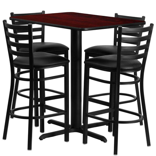 24''W X 42''L Rectangular Mahogany Laminate Tab... 24''W X 42''L Rectangular Mahogany Laminate Table Set With 4 Ladder Back Metal Barstools - Black Vinyl Seat By Flash Furniture