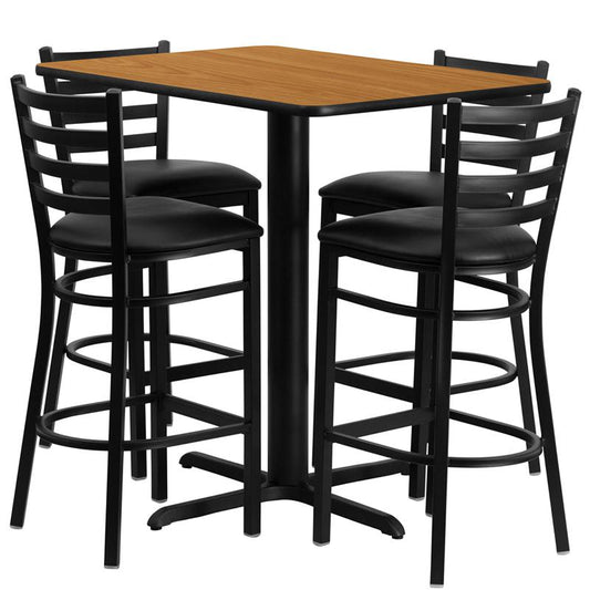 24'' X 42'' Rectangular Natural Laminate Table ... 24'' X 42'' Rectangular Natural Laminate Table Set With 4 Ladder Back Metal Barstools - Black Vinyl Seat By Flash Furniture