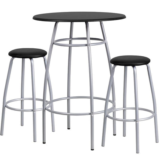 23.5" Square Silver Metal Bar Table Set With Wo... 23.5" Square Silver Metal Bar Table Set With Wood Top And 2 Backless Stools By Flash Furniture