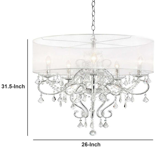 Ceiling Lamp With Hanging Crystals And Round Ca... Ceiling Lamp With Hanging Crystals And Round Canopy, Silver By Benzara