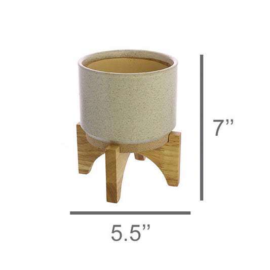 Ames Cachepot, Ceramic with Wood - Small - Whit... Ames Cachepot, Ceramic with Wood - Small - White, Natural Set Of 3 By HomArt