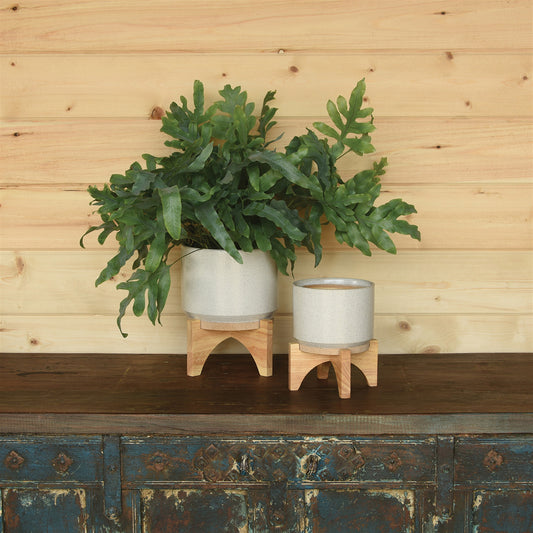 Ames Cachepot, Ceramic with Wood - Large - Whit... Ames Cachepot, Ceramic with Wood - Large - White, Natural Set Of 2 By HomArt