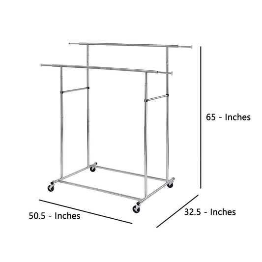 Dual Bar Tubular Metal Frame Garment Rack With ... Dual Bar Tubular Metal Frame Garment Rack With Casters, Chrome By Benzara