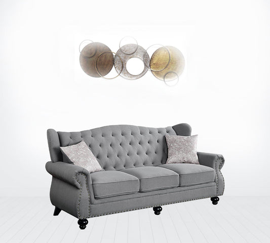 103" Light Gray Velvet And Gold Sofa By Homeroots 103" Light Gray Velvet And Gold Sofa By Homeroots