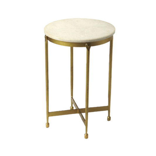 Antiqued Gold And White Marble Round End Table ... Antiqued Gold And White Marble Round End Table By Homeroots