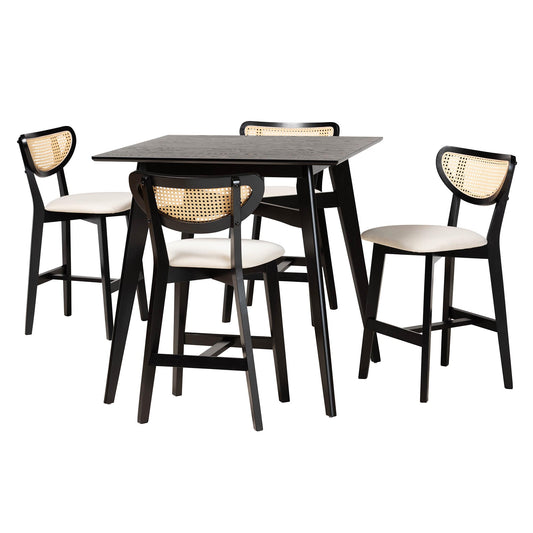 Baxton Studio Tarana Mid-Century Modern Cream F... Baxton Studio Tarana Mid-Century Modern Cream Fabric and Black Finished Wood 5-Piece Pub Set