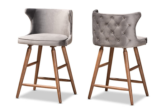 Baxton Studio Sagira Modern and Contemporary Tr... Baxton Studio Sagira Modern and Contemporary Transitional Grey Velvet Fabric Upholstered and Walnut Brown Finished Wood 2-Piece Counter Stool Set