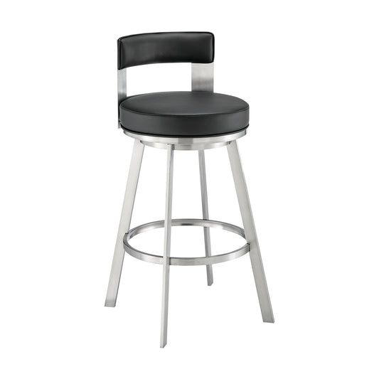 Jinab Swivel Counter Stool in Brushed Stainless... Jinab Swivel Counter Stool in Brushed Stainless Steel with Black Faux Leather By Armen Living