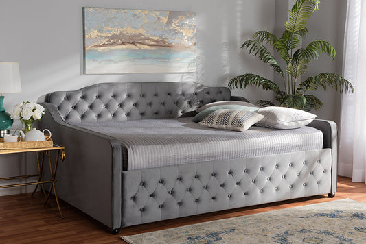 Baxton Studio Freda Transitional and Contempora... Baxton Studio Freda Transitional and Contemporary Grey Velvet Fabric Upholstered and Button Tufted Queen Size Daybed