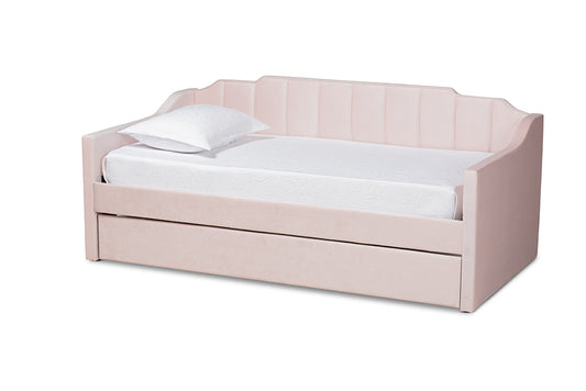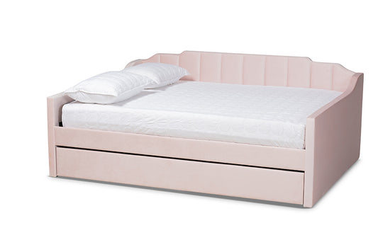Baxton Studio Timila Modern and Contemporary Li... Baxton Studio Timila Modern and Contemporary Light Pink Velvet Fabric Upholstered Queen Size Daybed with Trundle