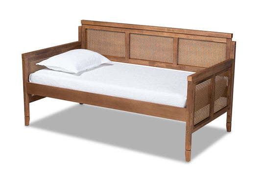Baxton Studio Ogden Mid-Century Modern Walnut B... Baxton Studio Ogden Mid-Century Modern Walnut Brown Finished Wood and Synthetic Rattan Twin Size Daybed