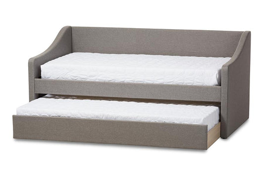 Baxton Studio Delora Modern and Contemporary Li... Baxton Studio Delora Modern and Contemporary Light Grey Fabric Upholstered Full Size Daybed with Roll-Out Trundle Bed