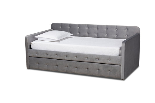 Baxton Studio Freda Transitional and Contempora... Baxton Studio Freda Transitional and Contemporary Grey Velvet Fabric Upholstered and Button Tufted Full Size Daybed with Trundle