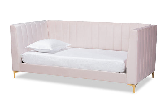 Baxton Studio Oksana Modern Contemporary Glam a... Baxton Studio Oksana Modern Contemporary Glam and Luxe Light Pink Velvet Fabric Upholstered and Gold Finished Twin Size Daybed