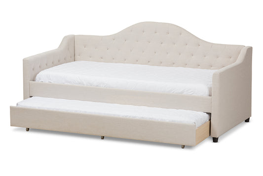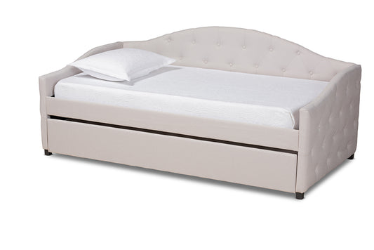 Baxton Studio Camelia Modern and Contemporary B... Baxton Studio Camelia Modern and Contemporary Beige Fabric Upholstered Button-Tufted Twin Size Sofa Daybed with Roll-Out Trundle Guest Bed
