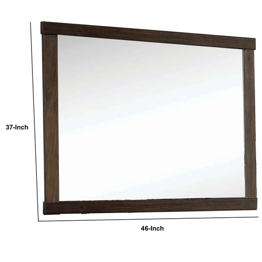 37 Inch Mirror With Rectangular Wooden Frame, B... 37 Inch Mirror With Rectangular Wooden Frame, Brown By Benzara