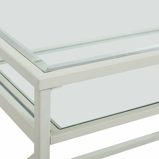 White Metal and Glass Compact Desk By Homeroots White Metal and Glass Compact Desk By Homeroots