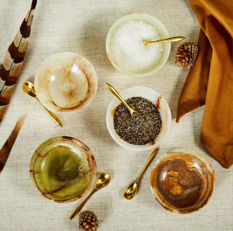Onyx-Marble Bowl with Golden Spoon Asst 5 Color... Onyx-Marble Bowl with Golden Spoon Asst 5 Colors Set Of 5 By Tozai Home