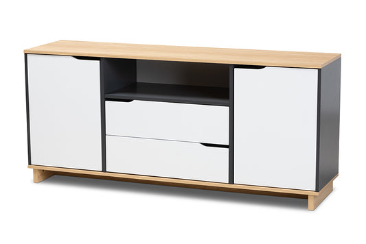 Baxton Studio Halden Mid-Century Modern Multico... Baxton Studio Halden Mid-Century Modern Multicolor Walnut Brown and Grey Gradient Finished Wood 2-Door Dining Room Sideboard Buffet