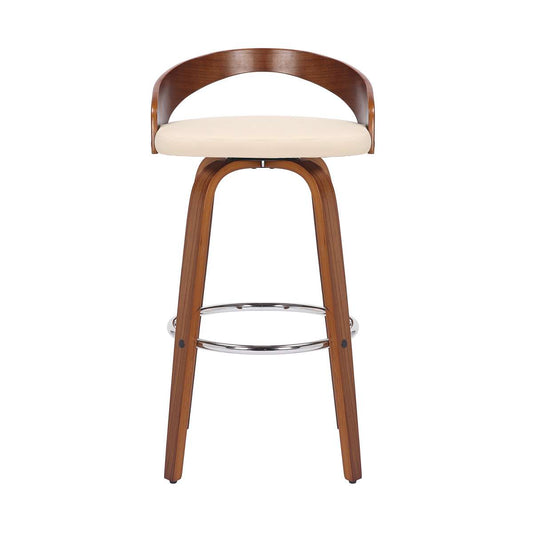 Sonia 30" Bar Height Swivel Cream Faux Leather ... Sonia 30" Bar Height Swivel Cream Faux Leather and Walnut Wood Bar Stool By Armen Living