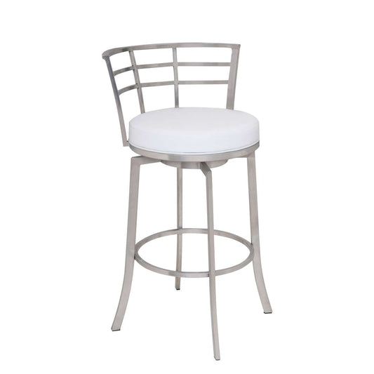 Viper 26" Counter Height Swivel White Faux Leat... Viper 26" Counter Height Swivel White Faux Leather and Brushed Stainless Steel Bar Stool By Armen Living