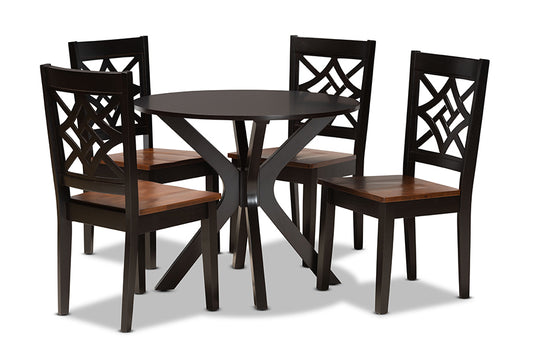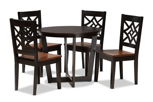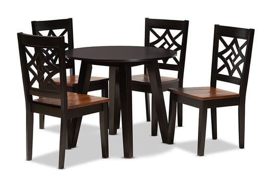 Baxton Studio Rava Modern and Contemporary Two-... Baxton Studio Rava Modern and Contemporary Two-Tone Dark Brown and Walnut Brown Finished Wood 5-Piece Dining Set