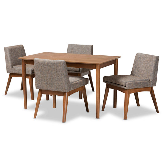 Baxton Studio Nexus Mid-Century Modern Gravel F... Baxton Studio Nexus Mid-Century Modern Gravel Fabric Upholstered and Walnut Brown Finished Wood 5-Piece Dining Set