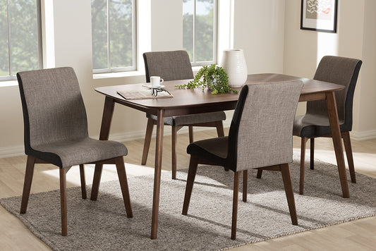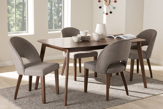Baxton Studio Dorina Mid-Century Modern Gravel ... Baxton Studio Dorina Mid-Century Modern Gravel Fabric Upholstered and Walnut Brown Finished Wood 5-Piece Dining Set