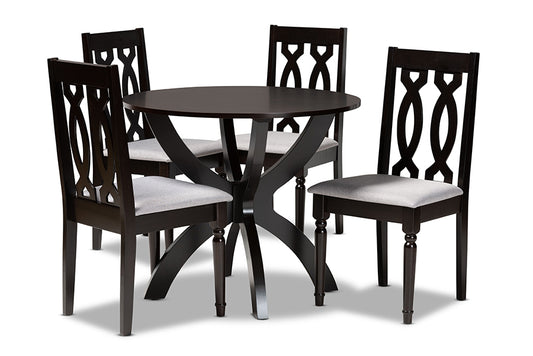 Baxton Studio Cherese Modern and Contemporary G... Baxton Studio Cherese Modern and Contemporary Grey Fabric Upholstered Espresso Brown Finished 5-Piece Wood Dining Set