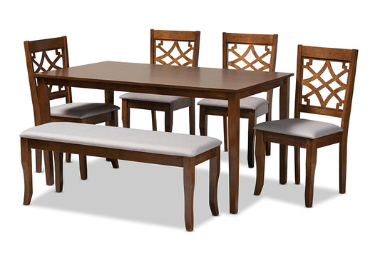 Baxton Studio Dori Modern and Contemporary Grey... Baxton Studio Dori Modern and Contemporary Grey Fabric Upholstered and Walnut Brown Finished Wood 6-Piece Dining Set