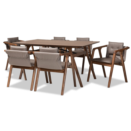 Baxton Studio Marcena Mid-Century Modern Grey I... Baxton Studio Marcena Mid-Century Modern Grey Imitation Leather Upholstered and Walnut Brown Finished Wood 7-Piece Dining Set