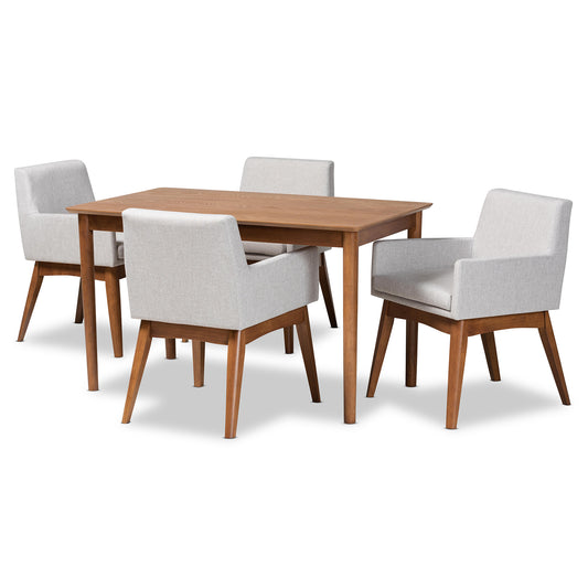 Baxton Studio Nexus Mid-Century Modern Greyish ... Baxton Studio Nexus Mid-Century Modern Greyish Beige Fabric Upholstered and Walnut Brown Finished Wood 5-Piece Dining Set