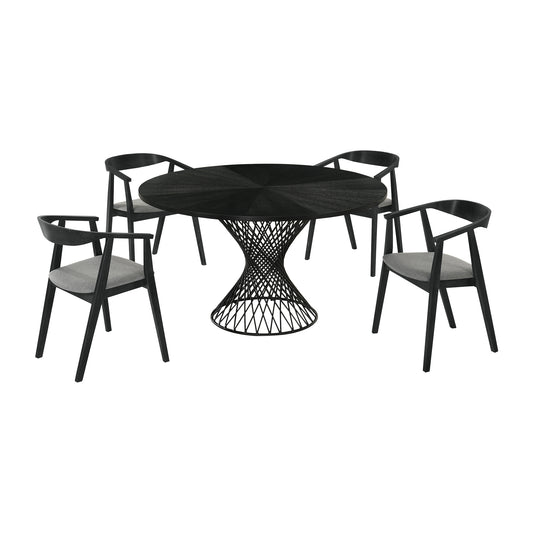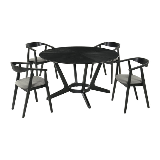 Santana 5 Piece Round Black Wood Dining Table S... Santana 5 Piece Round Black Wood Dining Table Set with Charcoal Fabric By Armen Living