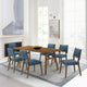 Channell 5 Piece Walnut Wood Dining Table Set w... Channell 5 Piece Walnut Wood Dining Table Set with Blue Fabric By Armen Living