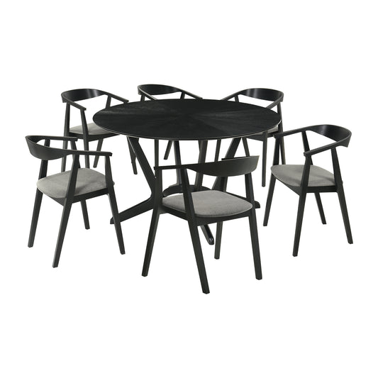Santana 7 Piece Round Black Wood Dining Table S... Santana 7 Piece Round Black Wood Dining Table Set with Charcoal Fabric By Armen Living