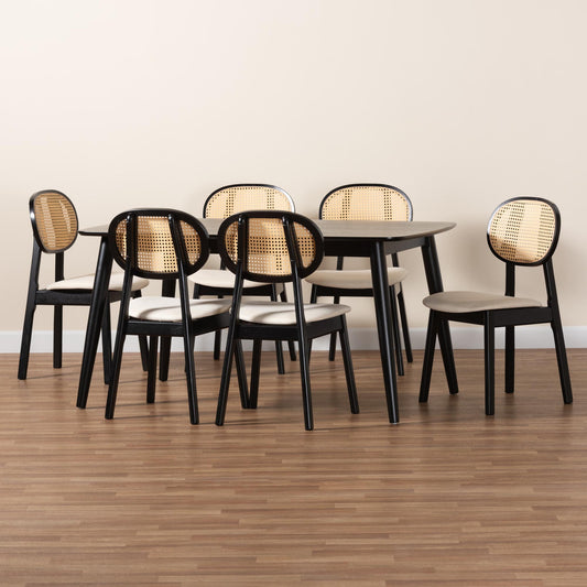 Baxton Studio Aniceta Modern Bohemian Black Fin... Baxton Studio Aniceta Modern Bohemian Black Finished Wood and Rattan 7-Piece Dining Set