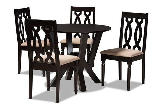 Baxton Studio Lanier Modern and Contemporary Sa... Baxton Studio Lanier Modern and Contemporary Sand Fabric Upholstered Espresso Brown Finished Wood 5-Piece Dining Set