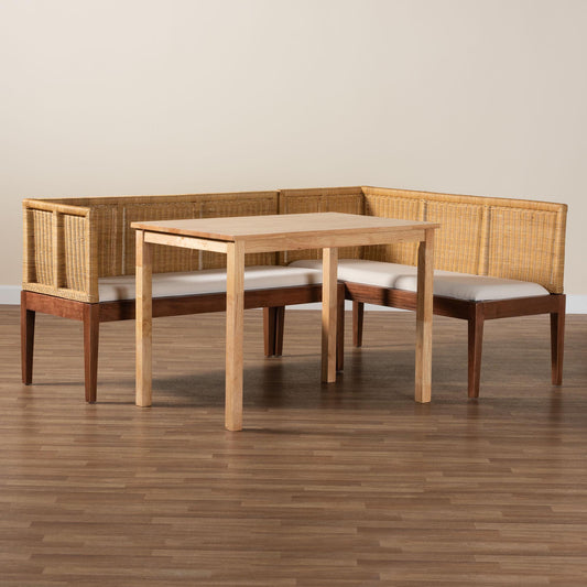 Baxton Studio bali & pari Kalimantan Bohemian L... Baxton Studio bali & pari Kalimantan Bohemian Light Honey Rattan 3-Piece Dining Nook Set