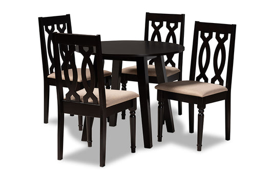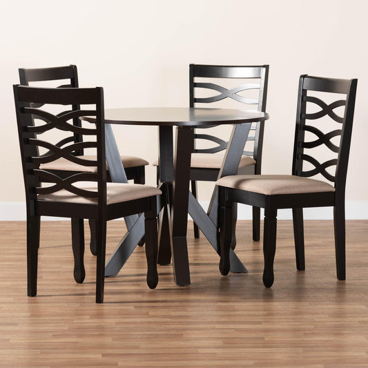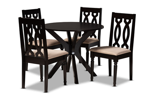 Baxton Studio Callie Modern and Contemporary Sa... Baxton Studio Callie Modern and Contemporary Sand Fabric Upholstered and Dark Brown Finished Wood 5-Piece Dining Set