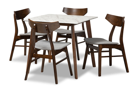 Baxton Studio Pearson Mid-Century Modern Transi... Baxton Studio Pearson Mid-Century Modern Transitional Light Grey Fabric Upholstered and Walnut Brown Finished Wood 5-Piece Dining Set with Faux Marble Table