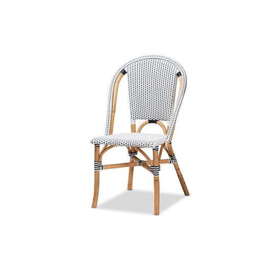 Baxton Studio Genica Classic French Black and W... Baxton Studio Genica Classic French Black and White Waeving and Natural Brown Rattan 5-Piece Dining Chair Set