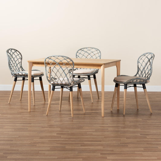Baxton Studio Manhattan Modern Bohemian Rattan ... Baxton Studio Manhattan Modern Bohemian Rattan and Natural Oak Finished Wood 5-Piece Dining Set