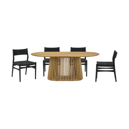 Pasadena Erie 5 Piece Oval Dining Set in Natura... Pasadena Erie 5 Piece Oval Dining Set in Natural Oak Finish with Black Paper Cord Chairs By Armen Living