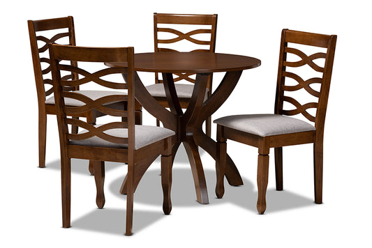 Baxton Studio Ariane Modern and Contemporary Gr... Baxton Studio Ariane Modern and Contemporary Grey Fabric Upholstered and Walnut Brown Finished Wood 5-Piece Dining Set