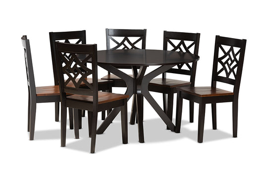 Baxton Studio Liese Modern and Contemporary Tra... Baxton Studio Liese Modern and Contemporary Transitional Two-Tone Dark Brown and Walnut Brown Finished Wood 7-Piece Dining Set